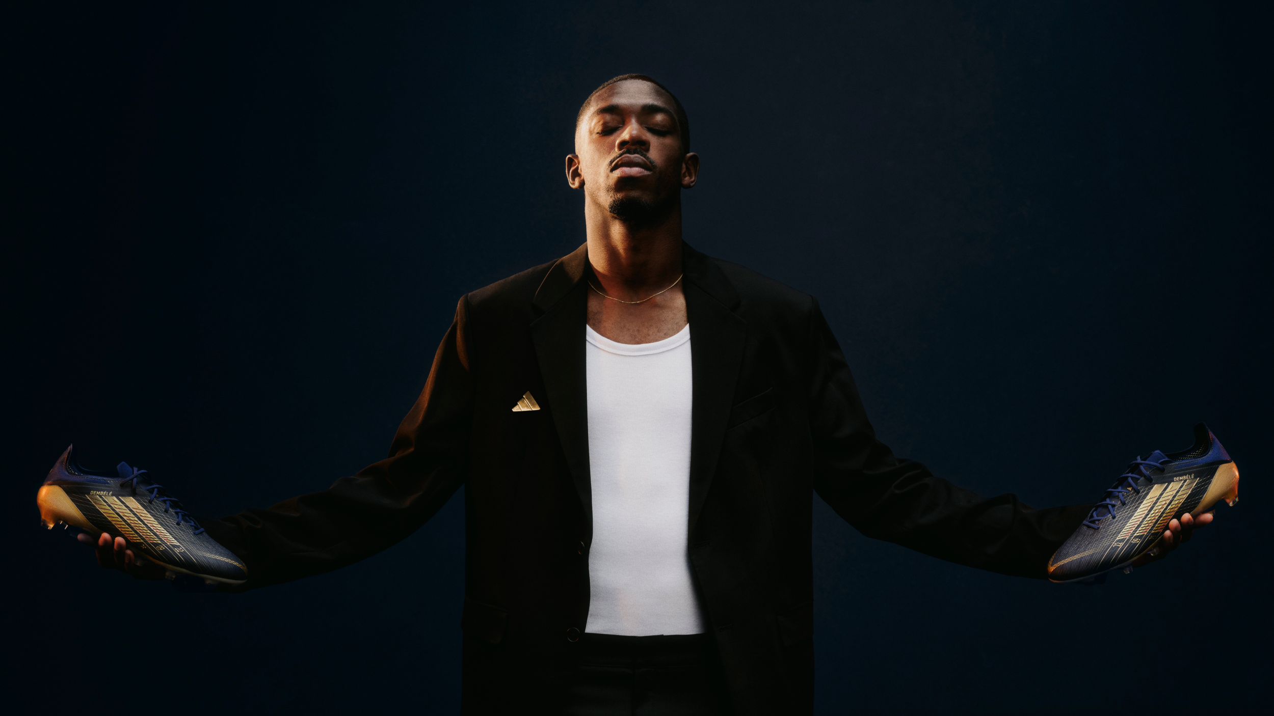 A reactive photography series for Adidas Football, shot with Thomas van Kristen, captured Dembélé recreating iconic on pitch celebrations to commemorate this historic night.